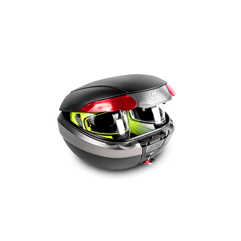 55/56 ltr top-case, black embossed.Equipped with retractable carrying handle. This model can be provided with painted covers.